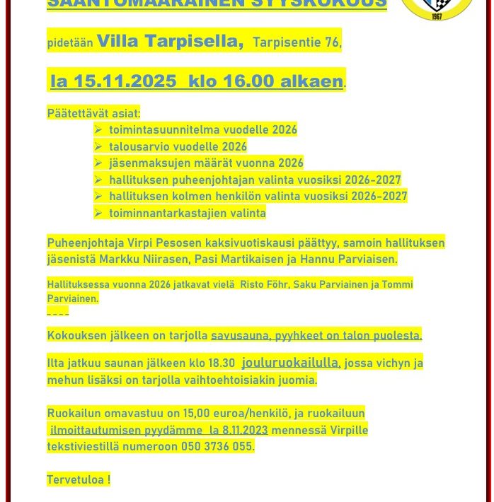 Nyt on suuri osa Myhinpään ek:n turvahenkilöstä jo saanut pakollisen turvakoulutuksen. Konttimäen ns:n talolle kokoontui…